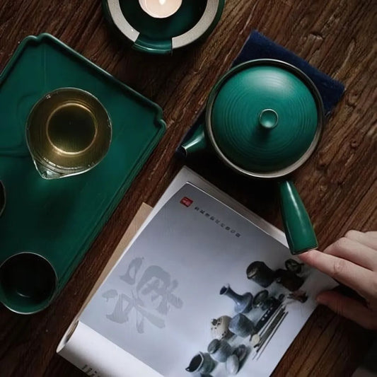 Japanese Style Side Grip Ceramic Glaze Teapot Set