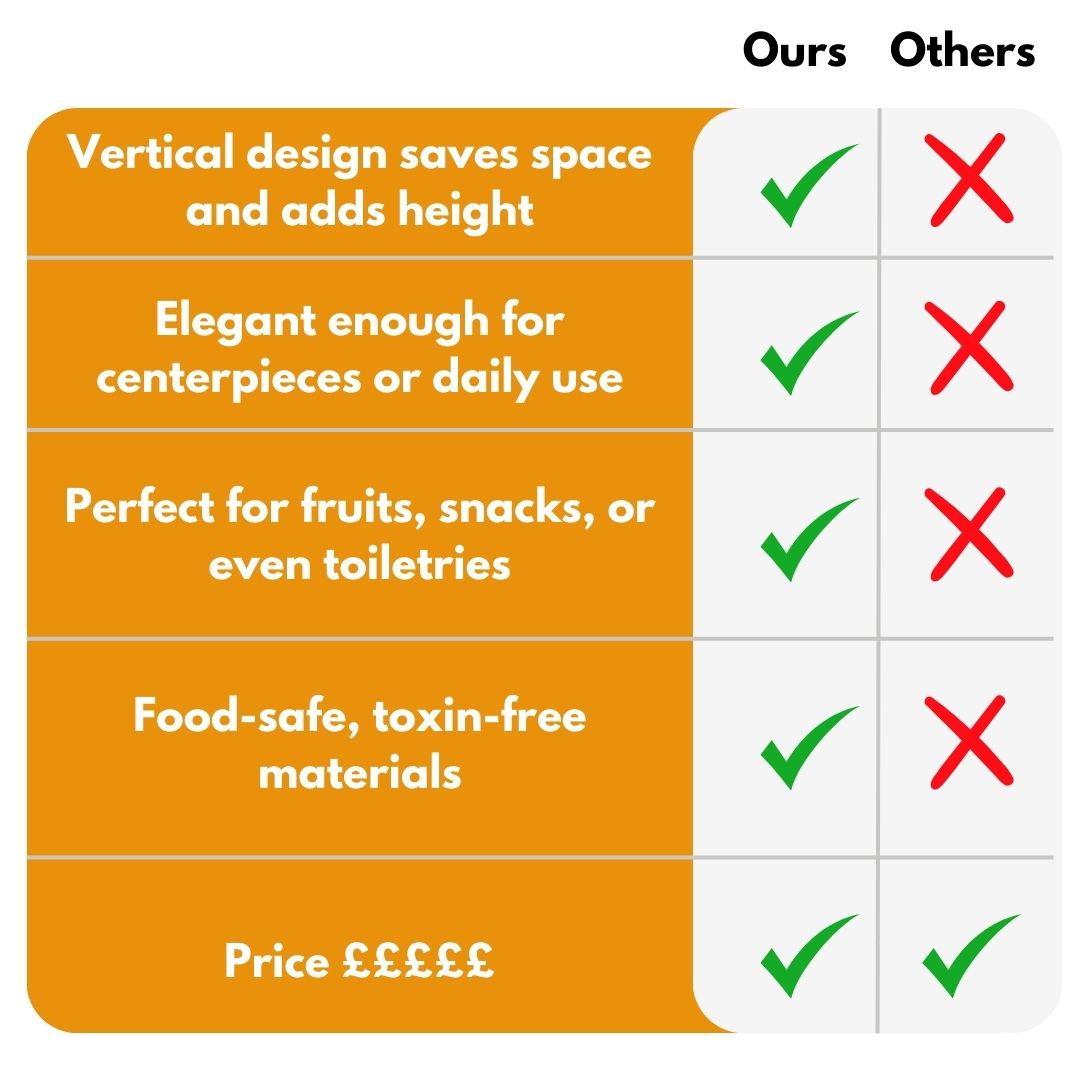 We’re confident this stylish, space-saving tiered fruit bowl will become a favorite for keeping your kitchen or dining area organized and elegant. That’s why your purchase is backed by our 30-day satisfaction guarantee. If it doesn’t bring you convenience, versatility, and timeless style, just reach out to us at support@kertem.co.uk. No hassle, no pressure just genuine support from a team that cares about your home’s beauty and function.