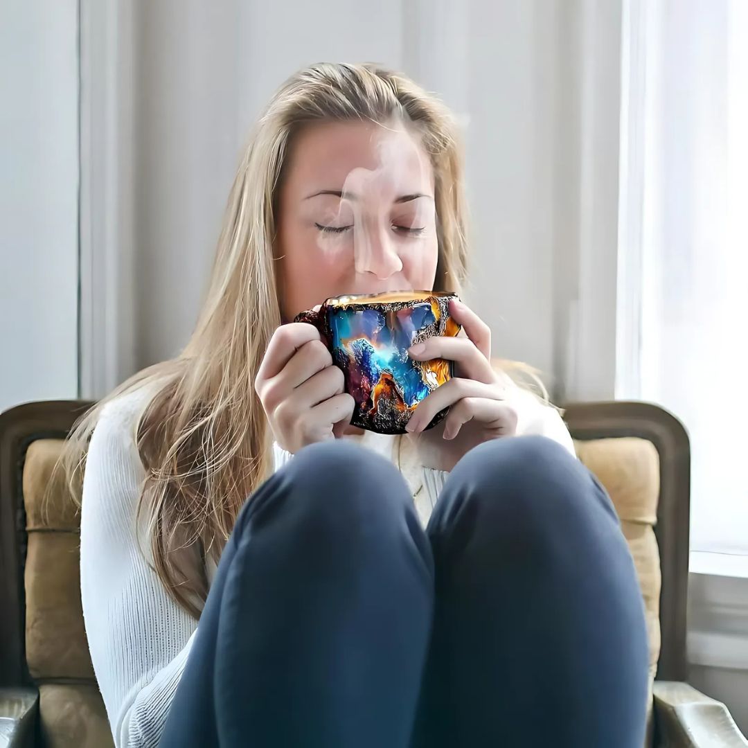 Featuring intricate patterns that evoke the look of gemstones, these mugs make a bold statement with their striking visual appeal. Each mug is uniquely crafted to reflect the natural beauty of stones like amethyst and agate, bringing a piece of nature into your home.