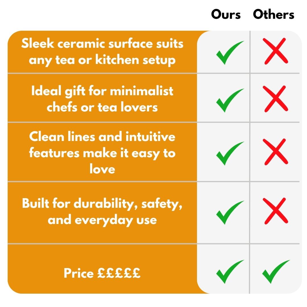 The ceramic top isn’t just easy to clean it elevates your setup with a refined, modern touch. Designed to support clay, metal, ceramic, or glass teapots, it works seamlessly in traditional tea spaces or contemporary kitchens alike.