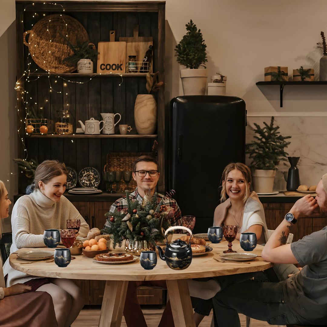 The Japanese Blue Landscape Tea Set with Tray brings the art of tea drinking to life with its serene design and thoughtful craftsmanship. Inspired by the natural beauty of Japan’s landscapes, the set features a smooth, white interior that enhances the purity of your tea, while the exterior boasts a stunning blue glaze depicting snowy mountains, quiet trees, and flowing rivers. Each sip becomes an immersive experience, blending taste and visual delight for a moment of tranquility.