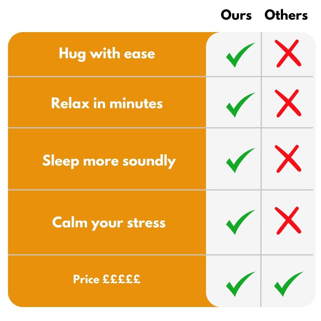 They use Deep Pressure Therapy (DPT), a proven calming technique that lowers cortisol levels and activates your body’s natural relaxation response