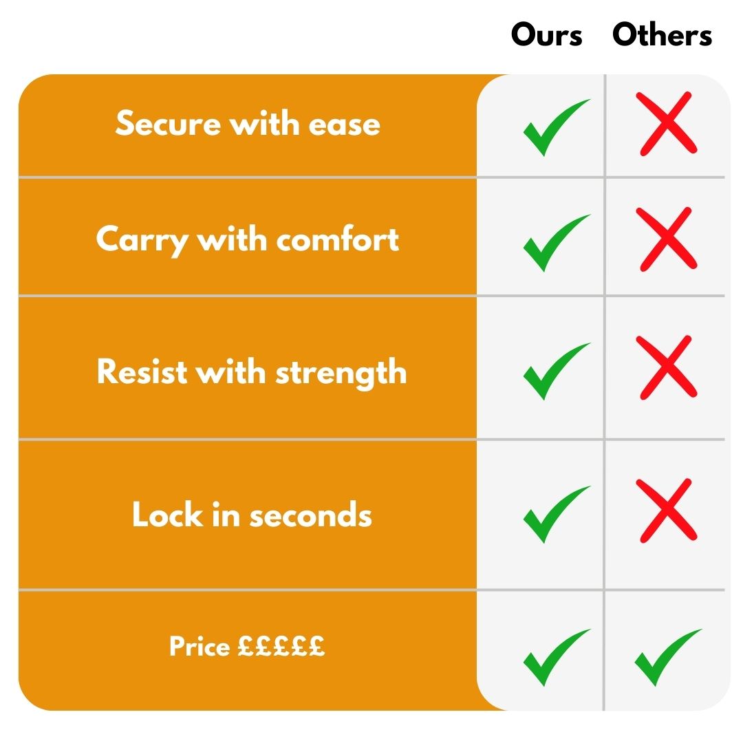 It’s designed to withstand common theft tools like saws, bolt cutters, and grinders. While not officially Sold Secure certified, it passes their test standards.
